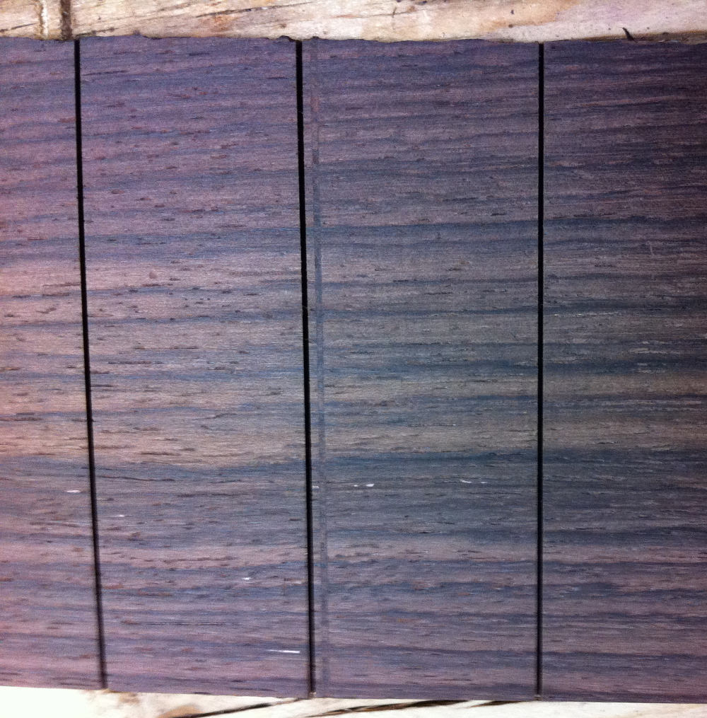 As I was cutting out the frets I noticed that one of them didn’t look quite right so I stopped cutting and rechecked the fret spacing and sure enough I had miss-marked one of the frets. Thankfully I was able to mostly correct the mistake by gluing in a small strip of wood as the picture below shows.